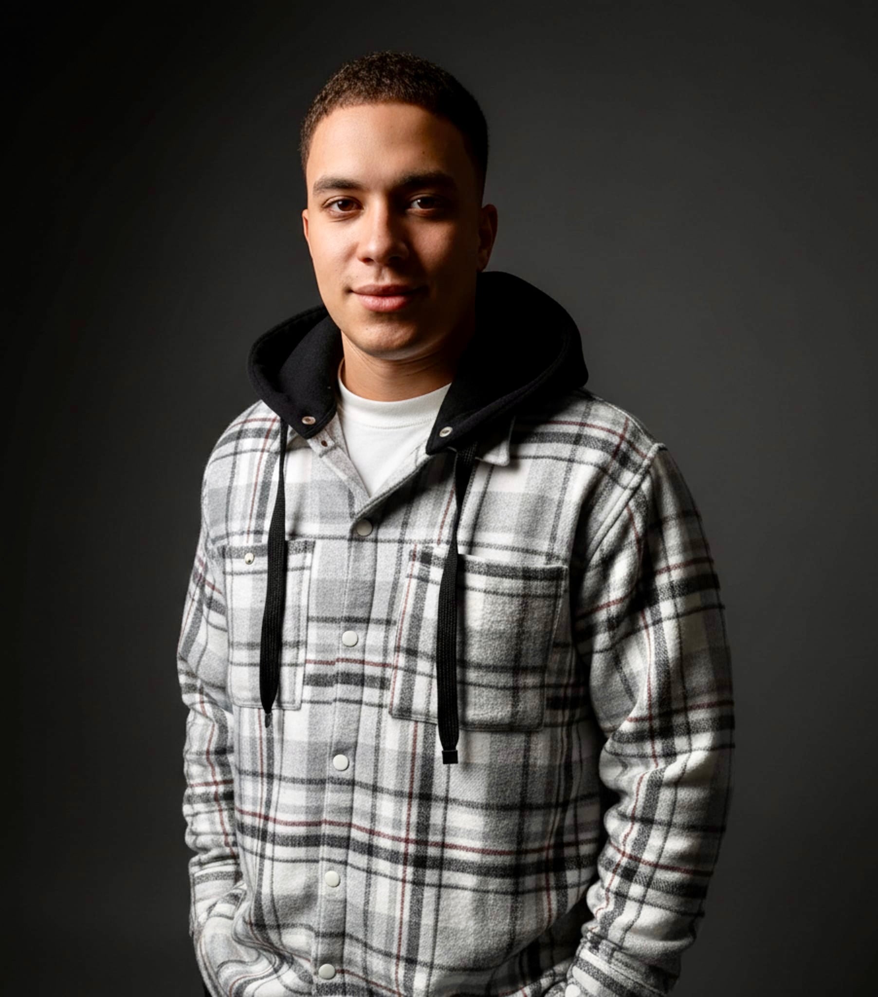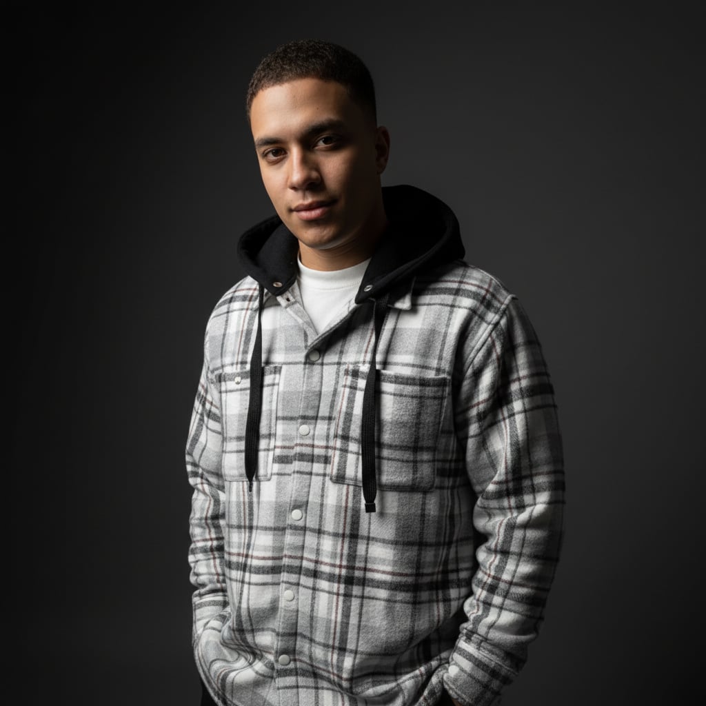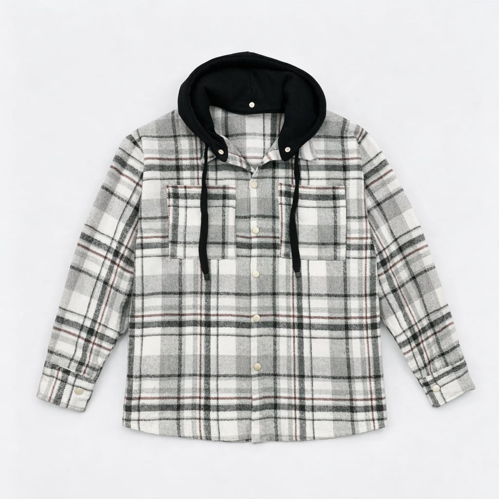 Designed in an oversized boxy fit that delivers effortless presence and sharp, clear lines, Includes a detachable hood, allowing you to switch seamlessly between a classic check overshirt silhouette and a bold streetwear edge.